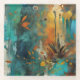Autumn Harvest Teal Rust Gold Abstract Glass Coaster