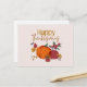 Celebrate the warmth of the Thanksgiving season with this charming postcard featuring an autumn harvest design. With vibrant pumpkins, seasonal leaves, and a jar of preserves, this card captures the essence of fall. The rich autumnal colours and elegant "Happy Thanksgiving" text make it perfect for sending holiday wishes to loved ones. Whether for family or friends, this postcard embodies the gratitude and joy of Thanksgiving.