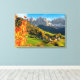 Autumn in a Dolomites landscape with church Canvas Print