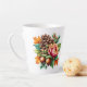 This latte size coffee mug is shown with a lovely autumn pinecone and acorns floral art print.