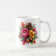 Coffee mug is shown with a lovely autumn pinecone and acorns floral art print.