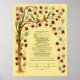 A beautiful tree of life in autumn theme with fall color leaves, green hydrangeas (autumn flowers), and apples (autumn harvest). A pair of lovebirds is perched on one of its branches. This imaginary tree of life is perfect for a fall wedding ketubah. A Hebrew quote graces this otherwise English ketubah.