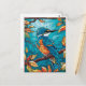 A postcard featuring a kingfisher during autumn in stained glass style.