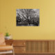 A subtly warm toned highly detailed photo taken at Bute Park, Cardiff, Wales, UK on a bright late October day. The Dock Feeder Canal can be seen on the right with a spreading Oak Tree in the middle which stands between two paths leading in different directions. A nice black and white photo with lots of detail and a broad tonal range.