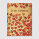 Multiple hearts, cut from fallen leaves, on a rustic, old paper background image. Customisable text reading, "Be My Valentine" also appears.