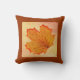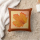 Spruce up your living/family/bed room with a touch of elegance. These pillows have brightly coloured leaves front and centre, each heralding the change of seasons. This burnt orange one has a broad leaf maple in bright yellow overlaid on one of bright orange, both rest on a background of pastel hues.