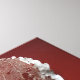 Still life of a dried leaf on a piece of red slab.