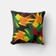 This striking decorative throw pillow features an abstract pattern of leaves in all the colours of Autumn: orange, yellow, red and green. The design is repeated on the back.
