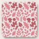 A seamless pattern featuring various autumn leaves, acorns, and mushrooms in shades of pink