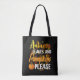 Autumn leaves and pumpkins please funny halloween tote bag