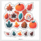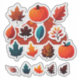 Vibrant autumn stickers featuring colorful maple and pumpkin shapes. Ideal for scrapbooks, gift tags, school projects, and seasonal crafts. Bright oranges, reds, greens capture fall vibes and cozy celebrations.
