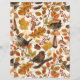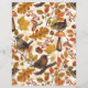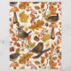 Hand-painted autumn pattern with various autumnal leaves, berries, acorns, birds and mushrooms