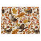 Hand-painted autumn pattern with various autumnal leaves, berries, acorns, birds and mushrooms