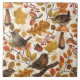 Hand-painted autumn pattern with various autumnal leaves, berries, acorns, birds and mushrooms