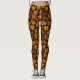 Beautiful leggings featuring a seamless pattern of orange and brown autumn leaves on a dark background.