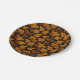 Beautiful paper plates featuring a seamless pattern of orange and brown autumn leaves on a dark background.