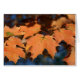 Photo of maple leaves changing to shades of orange and yellow in the autumn sun.