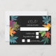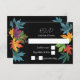 Autumn leaves contrast black wedding RSVP card