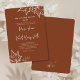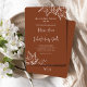 Embrace the beauty of the autumn season with these fall wedding invitations, designed in a rustic style with rich autumn leaves and fall foliage accents. Featuring botanical floral details, simple floral touches, and lush greenery, this design captures the warmth of nature’s palette. The simple elegant calligraphy script pairs seamlessly with classic wording, creating timeless charm. Perfect for couples planning a cosy and elegant fall wedding celebration filled with seasonal beauty.