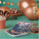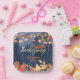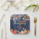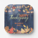 Celebrate Thanksgiving in style with this customisable paper plate! Featuring a wooden texture with a blue tint, this plate is adorned with a border of autumn leaves and string lights. The text on the plate reads “Happy Thanksgiving” in a cursive font, and can be personalised with your family name in a smaller font. The warm colours of orange, yellow, and red add to the festive atmosphere. Perfect for your Thanksgiving feast! 🍁🦃🍽️