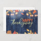 Autumn Leaves Fairy Lights On Wood Thanksgiving Postcard