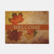 Greet your guests at your entry with this colourful welcome mat designed for the fall season. Autumn leaves make a beautiful background for this welcome mat.. The centre reads "Welcome" in gold typography on a burnt orange background that is a perfect compliment to the fall leaves.