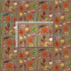 Modern graphic Autumn harvest theme Fabric on warm brown background. Ideal for crafting beautiful soft home furnishings in time for Thanksgiving celebrations.