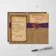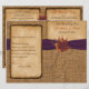 This gorgeous rustic autumn wedding program or Order of Service in fall colours of burnt orange, rust, gold and brown has images of three dried maple leaves on it with a PRINTED twine bow and dark aubergine purple PRINTED ribbon, and a FAUX burlap sack background with an aged burnt paper look overlay on it that matches the fall wedding invitation shown below. If you need assistance getting your information to fit or to align properly, please email niteowlstudio@gmail.com. Your document will print out as it appears on your monitor. It will NOT be edited for typos or alignment etc. by Zazzle. ****PLEASE NOTE that the higher grade paper is a card stock and does not fold well (cracks the design along the fold, even if you pre-score it with a sharp edge).