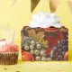 Green and purple grapes, apples, and red and gold leaves adorn this vintage pattern, which is a collage of retro harvest and autumn designs. The deep reds, purples (auburgine), shiny apples, and gorgeous leaves gives this deep-coloured design a classic, warm feel, perfect to help wrap that gift. This would also nicely dress up a Thanksgiviing, wine-related or fall gift.