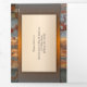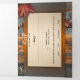 Tri-fold wedding invitation featuring several of your own favourite photos framed by an industrial rustic autumn design with colourful leaves.