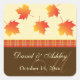 A monogrammed wedding sticker for autumn adorned with a plaid ribbon in the warm and inviting colours of orange and yellow. It adds a touch of elegance and warmth, while evoking the cosy feelings of fall with brightly coloured maple leaves and a brown and yellow background. Change the names, wedding date and monogram to make it your own.