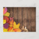 Autumn Leaves on Wood Background Postcard