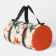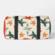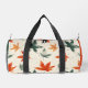 This illustration features a charming, minimalist pattern of autumn leaves in vibrant shades of red, orange, and muted green. The leaves are scattered across a soft beige background, with delicate splatters of black ink adding a touch of texture and artistic flair. The design captures the essence of fall, evoking a sense of warmth and natural beauty.