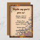 Autumn Leaves Pumpkins Halloween Invitation. Falling leaves in classic Autumn colours are accented by two harvest orange pumpkins and a vintage inspired vignette frame. All elements are printed on our high quality products, they do not include any real gold, jewels, embossing, or other textile elements. All designs are copyright Tabitha Jones all rights reserved.