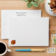 Fall is a good time of year to send a greeting to friends, or to tell your family about the summer vacation. Do it even more personal with your own envelopes. These graphical red autumn leaves will set the perfect mood for you. One single leaf is printed on front and rear, and a full pattern is printed inside the envelope. Three versions exist; golden, red and green, all with matching envelopes, pen and stamps! All text can easily be customised.