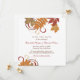 A elegant fall save the date featuring richly coloured autumn leaves — burnt orange, golden yellow, and deep burgundy red — cascading from the corners with delicate scrollwork flourishes. The crisp ivory background keeps the design fresh and refined, making it a beautiful choice for October or harvest season weddings. All names, date, location, and website details are fully editable.