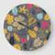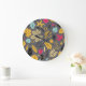 Autumn Leaves: Seamless Dark Pattern Large Clock