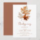 This elegant Thanksgiving dinner invitation features a beautiful grouping of watercolor fall leaves set on a white background. The invitation is simple and stylish, with the date, time, and location of the dinner in a tasteful font. The watercolor autumn leaves add a touch of whimsy and fun, and the overall design is perfect for celebrating the Thanksgiving holiday with your loved ones.