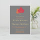 Autumn Leaves Wedding Invitation - Super Simple and Clean Design of a Fall Wedding Invitation on a grey background with a red and orange autumn leaf. If you are getting married in the autumn or the fall months of the year, you might be looking for stationery to reflect the season you are getting married in. Most fall wedding invitations are brown and drab, but this is the one if you want oranges and reds to just be an accent colour, and still have a modern wedding invitation with just a touch of the fall season.