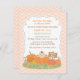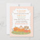 Find the cute little baby among the pumpkins and autumn leaves in the pumpkin patch! This elegant and adorable baby shower invitation is great for ushering in the arrival of the little ones for the fall season! A chevron zigzag pattern for background. Gender neutral palette of orange, green and brown. Personalise easily with your baby shower details including the chevron colour!