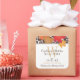The size is perfect and the design has a softness with the beautiful flowers around the edges. The black lettering on the white background is sharp. It stands out beautifully. I love the Mixture of font styles as it catches the eye.