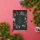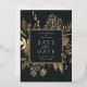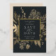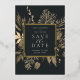 Our Autumn Meadow wedding save the date frames your wedding details with an elegant square border of dried watercolor foliage in muted shades of beige, tan and sepia, with real gold foil trim on a rich charcoal background. A modern and elegant take on the botanical trend.