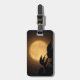 Make your luggage stand out on an airport carousel with unique tag designs! It's autumn, and a luminous golden yellow full moon has risen behind the black silhouettes of leaves blowing in the breeze on this dramatic fine art photography luggage tag. The background is illuminated in tones of orange, gold and brown to create an abstract pattern in an Asian motif. The reverse has a brown background for your customisable personal information.