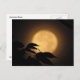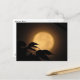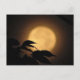It's autumn, and a luminous golden yellow full moon has risen behind the black silhouettes of leaves blowing in the breeze on this dramatic fine art photography postcard. The background is illuminated in tones of orange, gold and brown to create an abstract pattern in an Asian motif.
