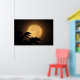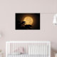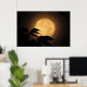 It's autumn, and a luminous golden yellow full moon has risen behind the black silhouettes of leaves blowing in the breeze on this dramatic fine art photography poster. The background is illuminated in tones of orange, gold and brown to create an abstract pattern in an Asian motif.