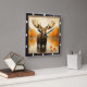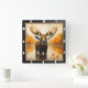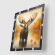 This stunning square wall clock showcases a majestic moose standing calmly in a serene lake, surrounded by a vibrant autumn forest with trees adorned in golden and orange foliage. Floating fall leaves on the water's surface complete this peaceful and rustic nature scene, perfect for lodge or cabin decor.