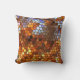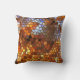 This decorative throw pillow features a geometric abstract pattern of five sided pentagon shaped mosaic tiles in brilliant autumn colours of red, orange, brown, yellow, gold, blue, grey, black and white.