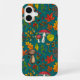 Autumn mushrooms, leaves, nuts and berries on blue iPhone case