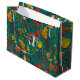 Autumn mushrooms, leaves, nuts and berries on blue large gift bag
