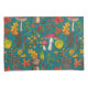 Autumn mushrooms, leaves, nuts and berries on blue pillowcase